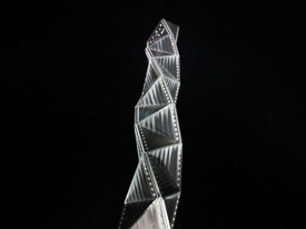 こちらの写真は「ロゴイメージ・プロジェクター・ライト」を使って壁面に光を映しだしています。県民文化センターでは、今年から初めて実施するとのことです。